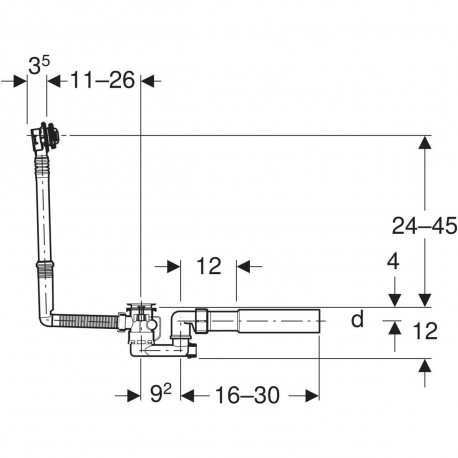 Geberit > Abfluss-Systeme / Zufuhr-Systeme > Abflüsse für Badewannen > odpływy wannowe > Set mit Ablauf und Überlauf Geberit, d52, długość 26 cm, mit Set wykończeniowym