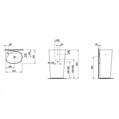 Laufen > Sanitärkeramik > Andere Waschbecken > Palomba > Monolityczna Waschtisch freistehend Laufen Palomba zur Wandmontage ze zintegrowanym postumentem z 1 otworem 525 x 435 x 900 mm - weiß
