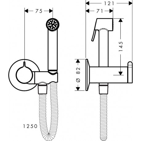 Hansgrohe > Armaturen > Bidetarmaturen > ShowerCollection > Bidet- Brausekopf Axor Bidette 1jet mit Mischer, uchwytem i wężem Dusch- 1.25 m, rund - Chrom