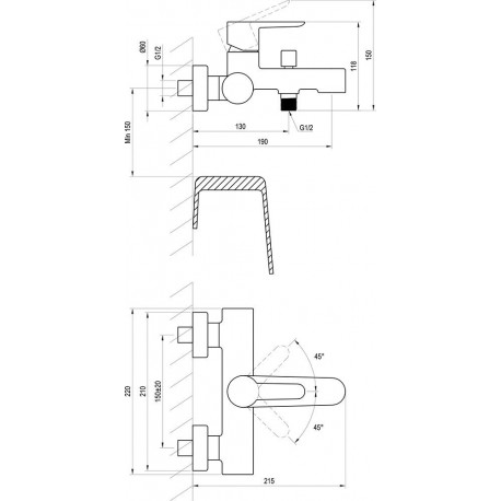 Ravak > Armaturen > Badewanne-Armatur > Puri > Wannenbatterie Ravak Puri, zur Wandmontage, mit Umschalter - Chrom