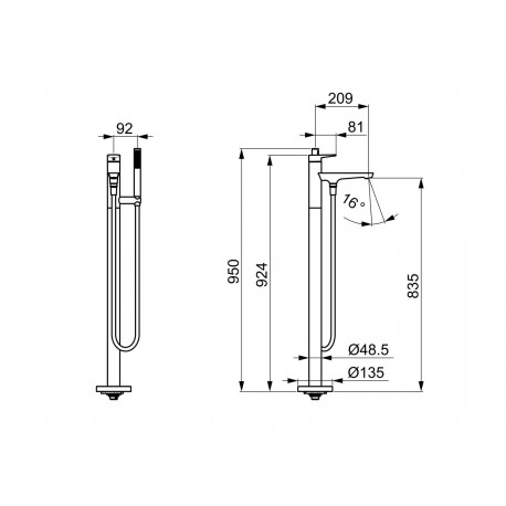 Auslauf Badewannen- freistehend Zucchetti Pan, Chrom