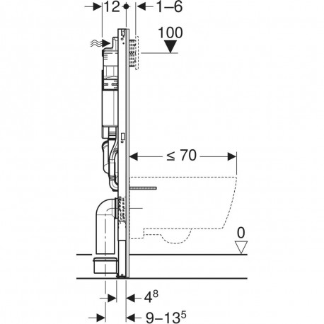 Geberit > Versteckte Installationen > Versteckte Spülkästen für Gipswände > Duofix > Unterputz-gestell Geberit Duofix do wiszących misek WC, 112 cm, ze spłuczką podtynkową Sigma 12 cm, z króćcem zum Anschluss odsysania powietrza wywiewnego