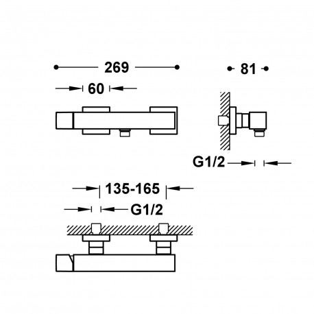 Armatur Tres Cuadro-Tres Badewannen- mit 3 Anschlüssen