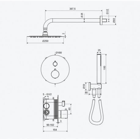 Excellent > Armaturen > Brausearmaturen und Badewanne-Armatur (versteckt) > Promocje Excellent > Set prysznicowo-wannowy Excellent Pi, Unterputz, 3 funkcyjny, thermostatisch mit Kopfbrause 25 cm - Chrom
