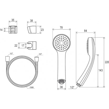 Serie: Elementy natryskowe, słuchawki, węże, uchwyty