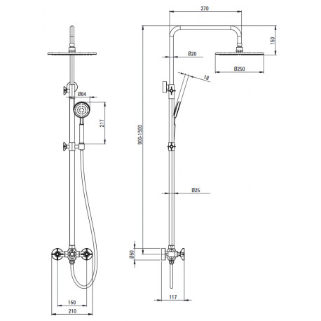 Produktanfrage Kopfbrause mit Armattur wannową, Deante Temisto - nero (schwarz matt):