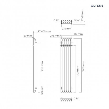 Oltens > Grzejniki > Dekorative Heizkörper > Stang > Grzejnik dekoracyjny Oltens Stang 150x31,5 cm - weiß