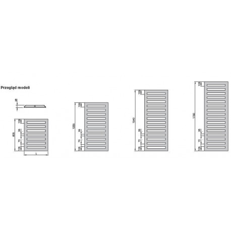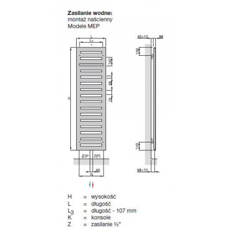 Grzejnik łazienkowy Metropolitan MEP jest modelem stworzonym jako grzejnik łazienkowy oraz dekoracyjny grzejnik pokojowy. Płaski front z otworami składa się z poziomych rur płaskich 70 x 8 mm, połączonych z profilem o przekroju trójkąta. Przeznaczony jest do montażu naściennego.