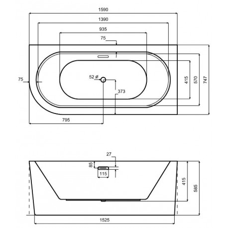 Badewanne Marmite Carmel 159x55cm ohne Überlauf