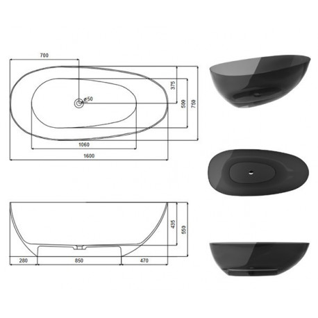 Besco > Badewannen > Freistehende Badewannen > Assos > Badewanne freistehend Besco Xara 160x75 cm oval Carbon Grey, maskownica schwarz matt