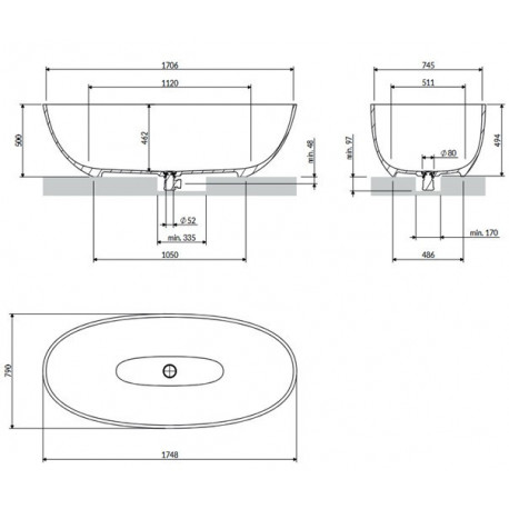 Omnires > Badewannen > Freistehende Badewannen > Wolnostojące > Badewanne freistehend Omnires Shell M+ 175x78cm - Farbe black lava matt
