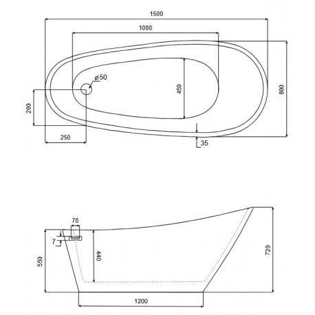 Besco > Badewannen > Freistehende Badewannen > Assos > Badewanne freistehend Besco Melody 150x80 cm oval weiß, maskownica syfonu z Überlauf weiß