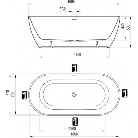 Ravak > Badewannen > Freistehende Badewannen > Pozostałe > Badewanne freistehend Ravak Freedom O Tec, Acryl-,170x77 cm - weiß, osłona odpływu weiß