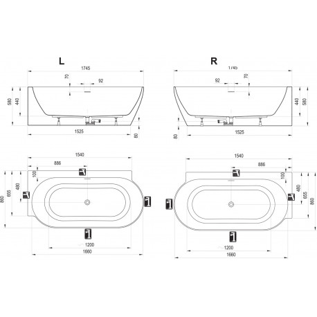 Ravak > Badewannen > Freistehende Badewannen > Pozostałe > Badewanne freistehend do ściany Ravak Freedom Corner II Tec, Acryl-,175 x 86 cm, rechte Version - Deepsea Blue (dunkelblau matt)/weiß, osłona odpływu weiß