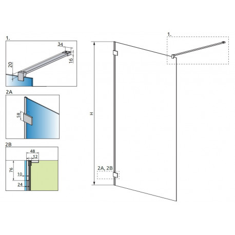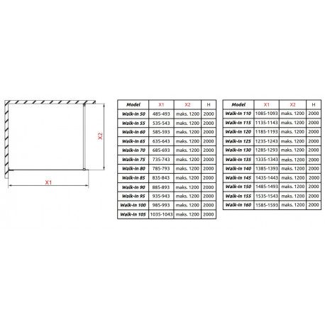 Radaway > Duschkabinen > Freistehende Wände (Walk-in) > Essenza Pro > Kabine Radaway Essenza Pro 8 Brushed Copper Walk-In II 110 cm, wys. 200 cm, Glas transparent 8 mm, profil miedź szczotkowana