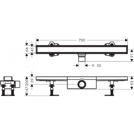 Komplett Ablaufrinne Hansgrohe RainDrain Compact 700, Rost do wyłożenia płytkami, standardowy