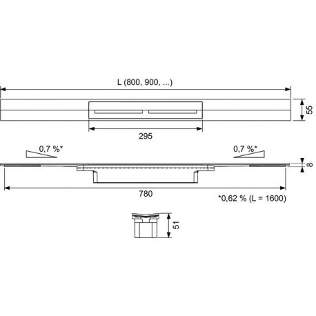 Tece > Abfluss-Systeme / Zufuhr-Systeme > Fußbodenablauf > Profile prysznicowe > Profil prysznicowy TECEdrainprofile, gebürsteter Stahl, 900 mm