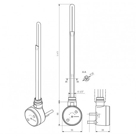 Terma > Zawory, Głowice > Grzałki > Grzałki > Grzałka elektryczna Terma MOA WiFi z elementem grzejnym, moc 600 W - weiß