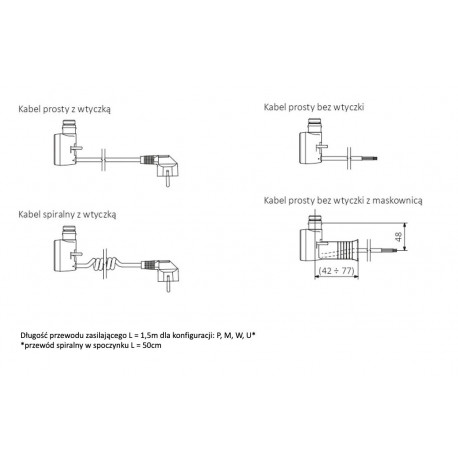 * Dostępne 3 rodzaje kabla (w kolorze obudowy): SZ - kabel spiralny z wtyczką, PB - prosty bez wtyczki, PW - prosty z wtyczką.
