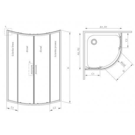 Radaway > Duschkabinen > Halbrunde Kabinen > Premium Pro > Duschkabine halbrund Radaway Premium Pro PDD asymmetrisch 80L x 100P cm - Glas transparent, profil Chrom