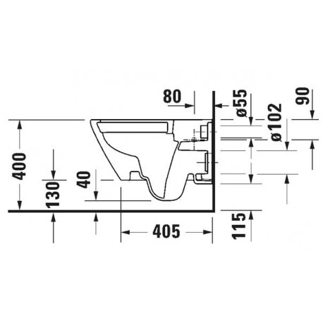 Duravit > Sanitärkeramik > Hangschlüssel > D-Code > Becken WC hängend Duravit D-Code 37x54 cm, montaż ukryty, bezkołnierzowa, Abfluss poziomy - weiß