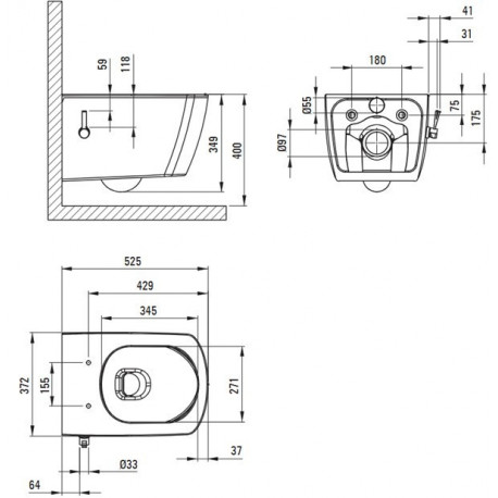 Deante > Sanitärkeramik > Hangschlüssel > Blur > Becken WC Deante Blur 52,5 x 37,2 cm, z funkcją bidetu, mit Armatur mieszaczową nero - weiß