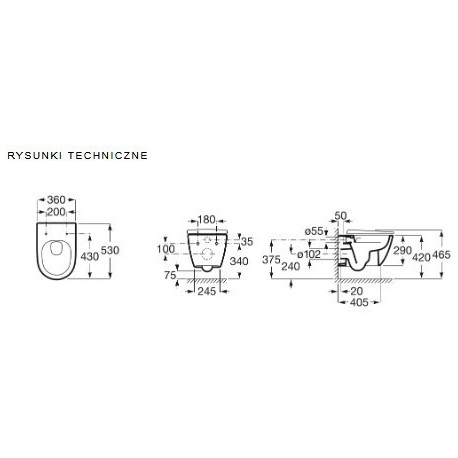 Roca > Sanitärkeramik > Hangschlüssel > Ona > Becken WC abgehängt, Roca Ona 36x53 cm, Rimless Vortex - weiß