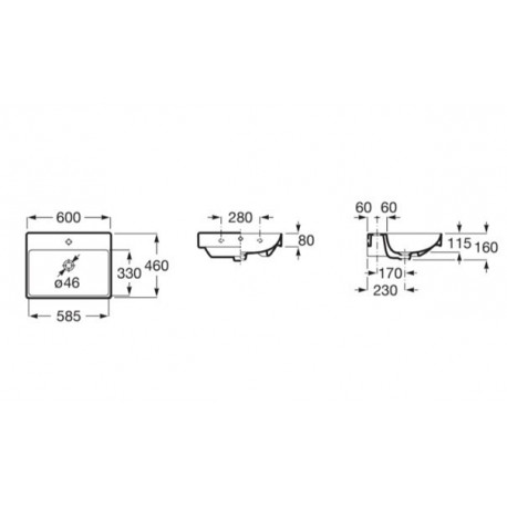 Roca > Sanitärkeramik > Hangwaschbecken > Ona > Kleiner waschtisch zur Wandmontage Roca Ona 60x46 cm FIineceramic - weiß