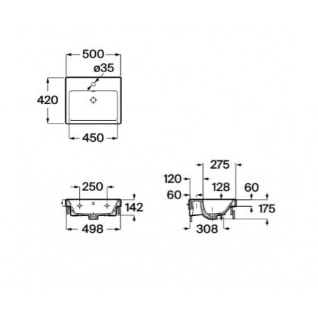 Roca > Sanitärkeramik > Hangwaschbecken > Gap > Waschtisch zur Wandmontage Roca Gap, 50 x 42 cm mit Anschluss na baterie, z Überlauf - weiß