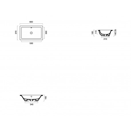 Waschtisch Einbau-/Unterbau- Catalano Zero 60x37 cm, mit Schicht Cataglaze - weiß