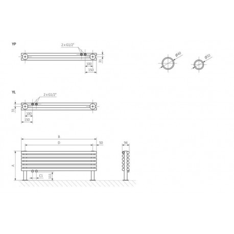 * Konstrukcja: kolektor – rura o średnicy Ø 30mm, profile pionowe o przekroju 30x40.