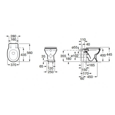Roca > Sanitärkeramik > Hangschlüssel > Carmen > Becken WC Roca Carmen stehend 37x56 cm o/doppelt - weiß