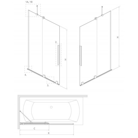 Radaway > Duschkabinen > Parawany nawannowe > Furo > Parawan nawannowy Radaway Furo Gold PND II 100, lewy, Glas transparent, 100x150cm, przesuwny, profil golden szczotkowany
