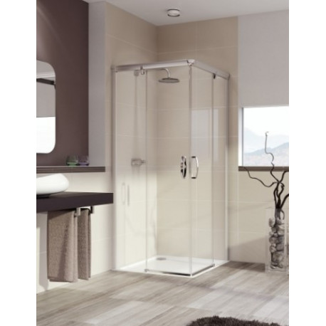 Huppe > Duschkabinen > Quadrat- oder rechteckige Kabinen > Aura > Eckeinstieg Huppe Aura Elegance Viereck, Tür Schiebe- 2-teilig 75x90x200 cm - Glas privatima mit Schicht Anti-Plaque, silbernes Profil Hochglanz