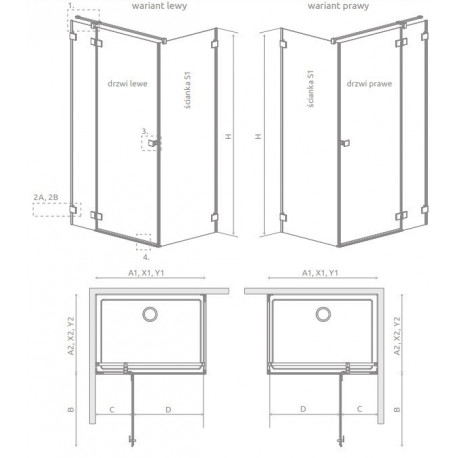 Składając zamówienie należy podać 2 numery artykułów: Tür oraz ścianki seitlich S1