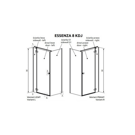 Składając zamówienie należy podać 3 numery artykułów frontu Kabine (dwa elementy) oraz ścianki seitlich S1.