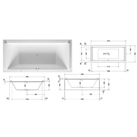 Badewanne rechteckig Ruben Ego, 195x135x45 cm, weiß, system hydromasażu Maxus