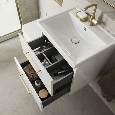 Defra > Badezimmermöbel > Schränke unter das Waschbecken > Faro > Schrank Unterbau- Defra Faro D60 z dwiema szufladami, szerokość 60 cm - lakier weiß Glanz