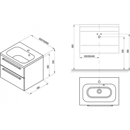 Wandwaschtisch lub mit Unterschrank Ravak Chrome, kompozytowa, 70x49cm, weiß Serie: Chrome