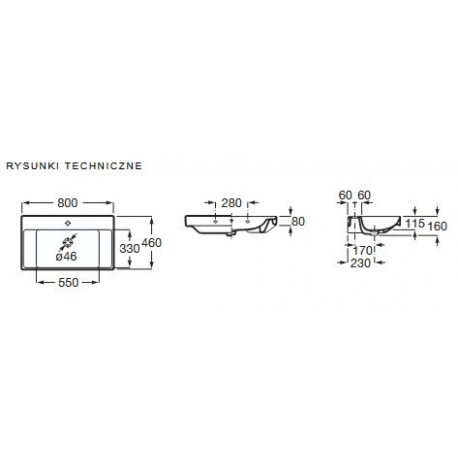 Roca > Sanitärkeramik > Umywalki stawiane na blat > Ona > Waschtisch zur Wandmontage rechteckig Roca Ona Fineceramic, 80x46cm, z Überlauf - weiß