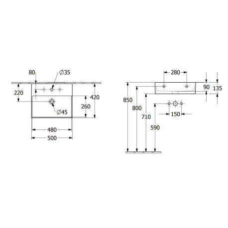 Villeroy & Boch > Sanitärkeramik > Umywalki stawiane na blat > Memento > Waschtisch Villeroy&Boch Memento 2.0 rechteckig 50x42cm, z Überlauf - weiß