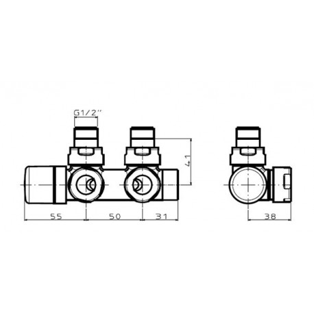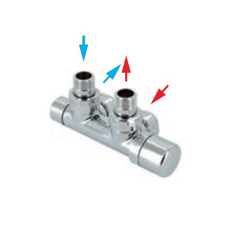 Zehnder > Zawory, Głowice > Ventile für Heizkörper > Twin > Set zaworowy Zehnder typ P (rechte Version), zum Anschluss środkowego 50 mm, regulacyjny, z możliwością podłączenia głowicy termostatycznej (M30x1,5 mm) - Chrom