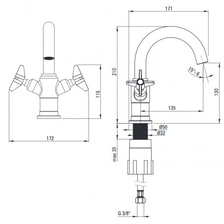 Zawór kątowy Schell Comfort regulacyjny 1/2x3/8' (do Waschtischarmatur) - Chrom Serie: Zawory kątowe