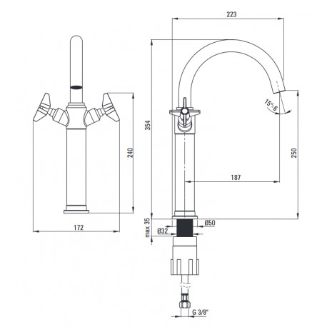 Zawór kątowy Schell Comfort regulacyjny 1/2x3/8' (do Waschtischarmatur) - Chrom Serie: Zawory kątowe
