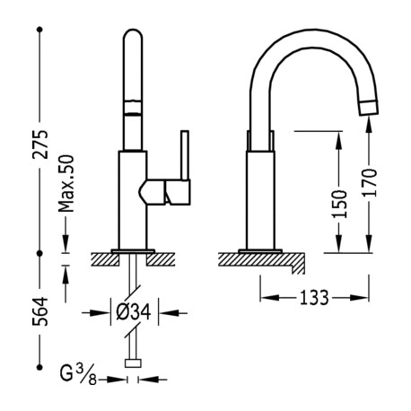 Waschtischarmatur hoch, mit verlängertem Auslauf Gessi Rettangolo